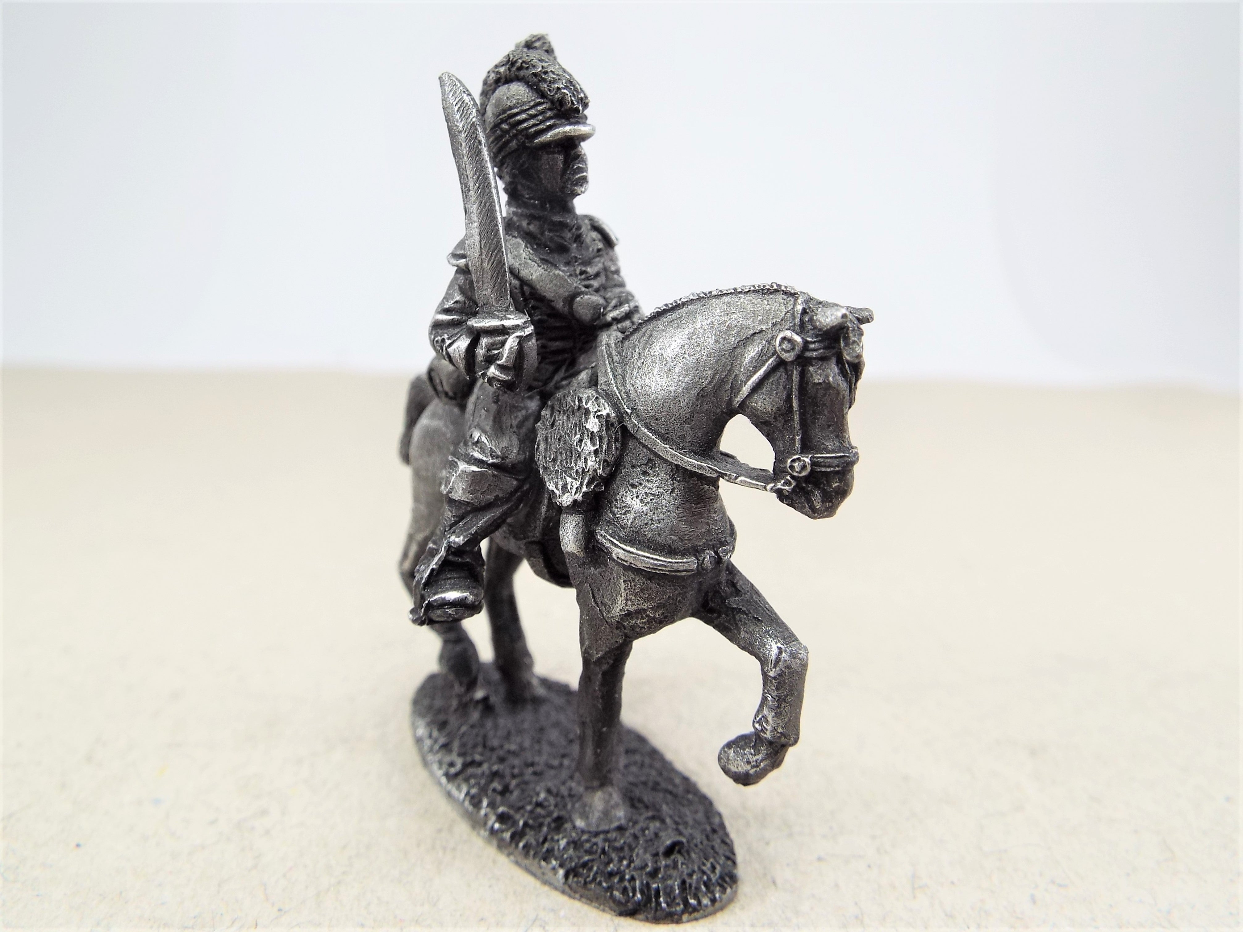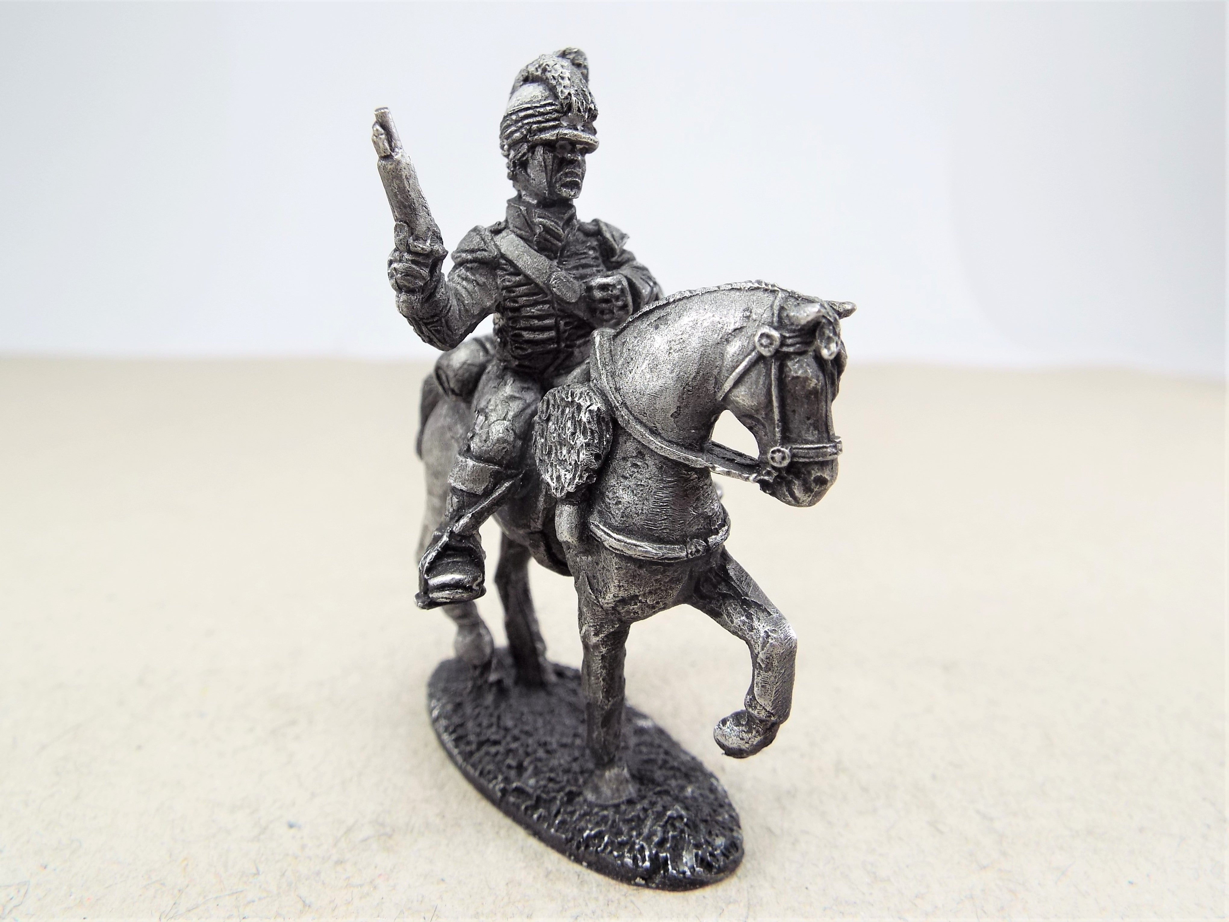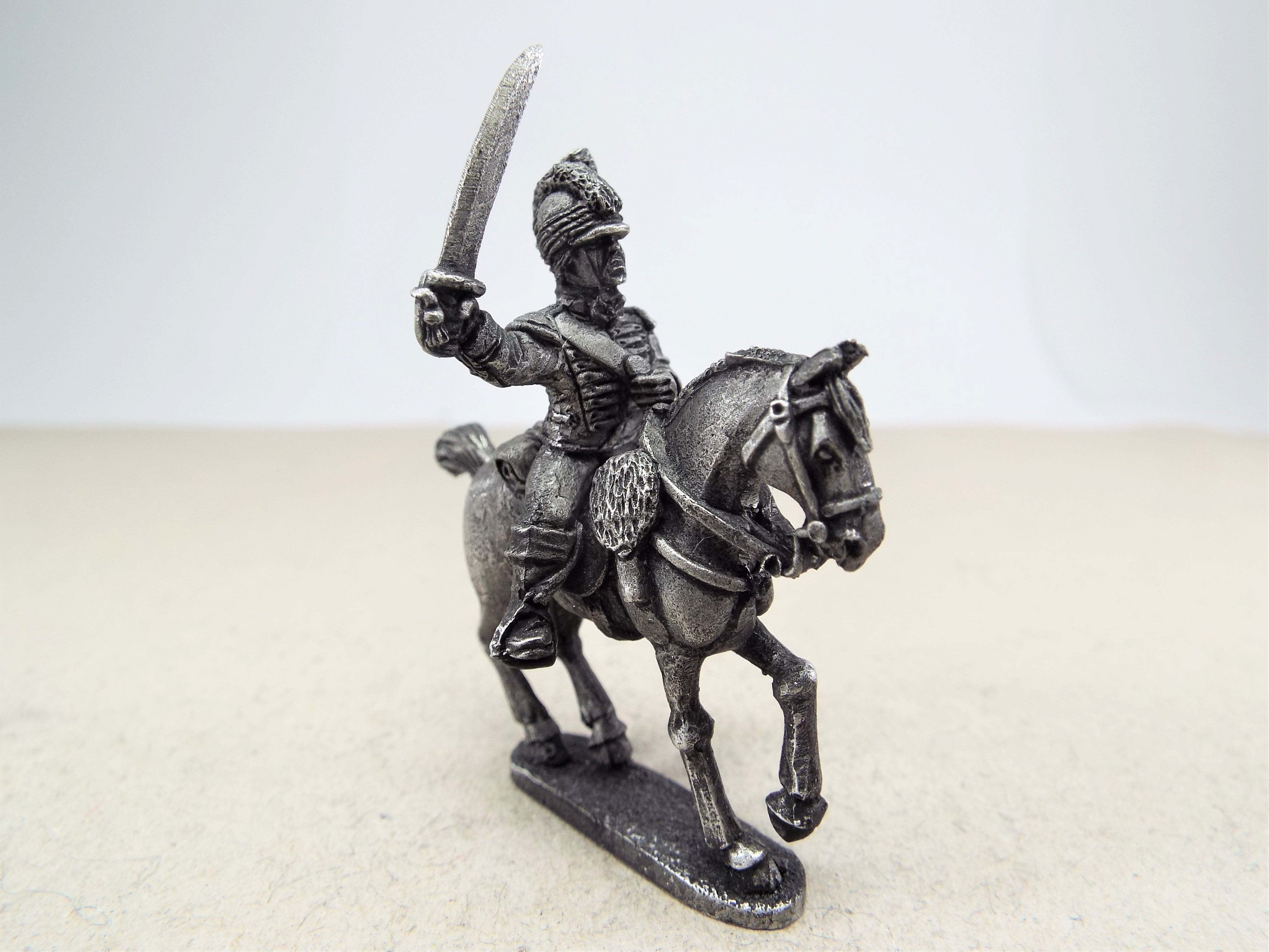 Irish Mounted Yeomanry wearing a light dragoon style uniform, with Tarleton helmet. This blister pack contains three unpainted mounted figures supplied with seperate heads. Examples of the figures are shown above. Figures are supplied unpainted and unassembled.